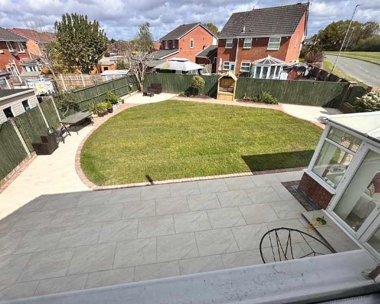 We design and install patios and paving using natural stone, Raj, porcelain, and more, serving Northwich and the surrounding areas.